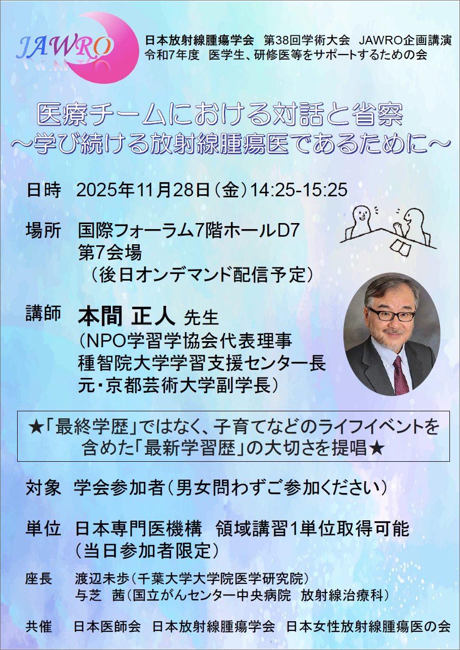 | 令和7年度 医学生、研修医等をサポートするための会 「医療チームにおける対話と省察 ~学び続ける放射線腫瘍医であるために~」 |